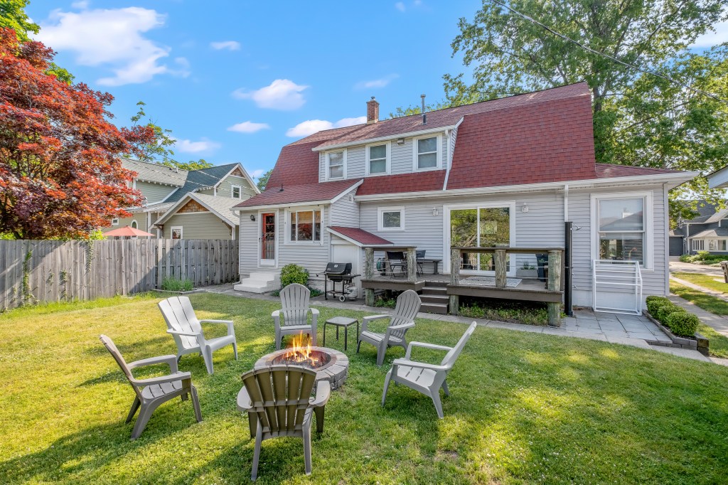 The adorable Cape Cod-style home sits one door down from Kids’ Corner park, one block off Lake Michigan and the Blue Stairs of South Beach, five blocks from the South Pier lighthouse, a quick walk from the picturesque downtown South Haven, and blocks from the Kal-Haven Trail for 33 miles of running and biking.